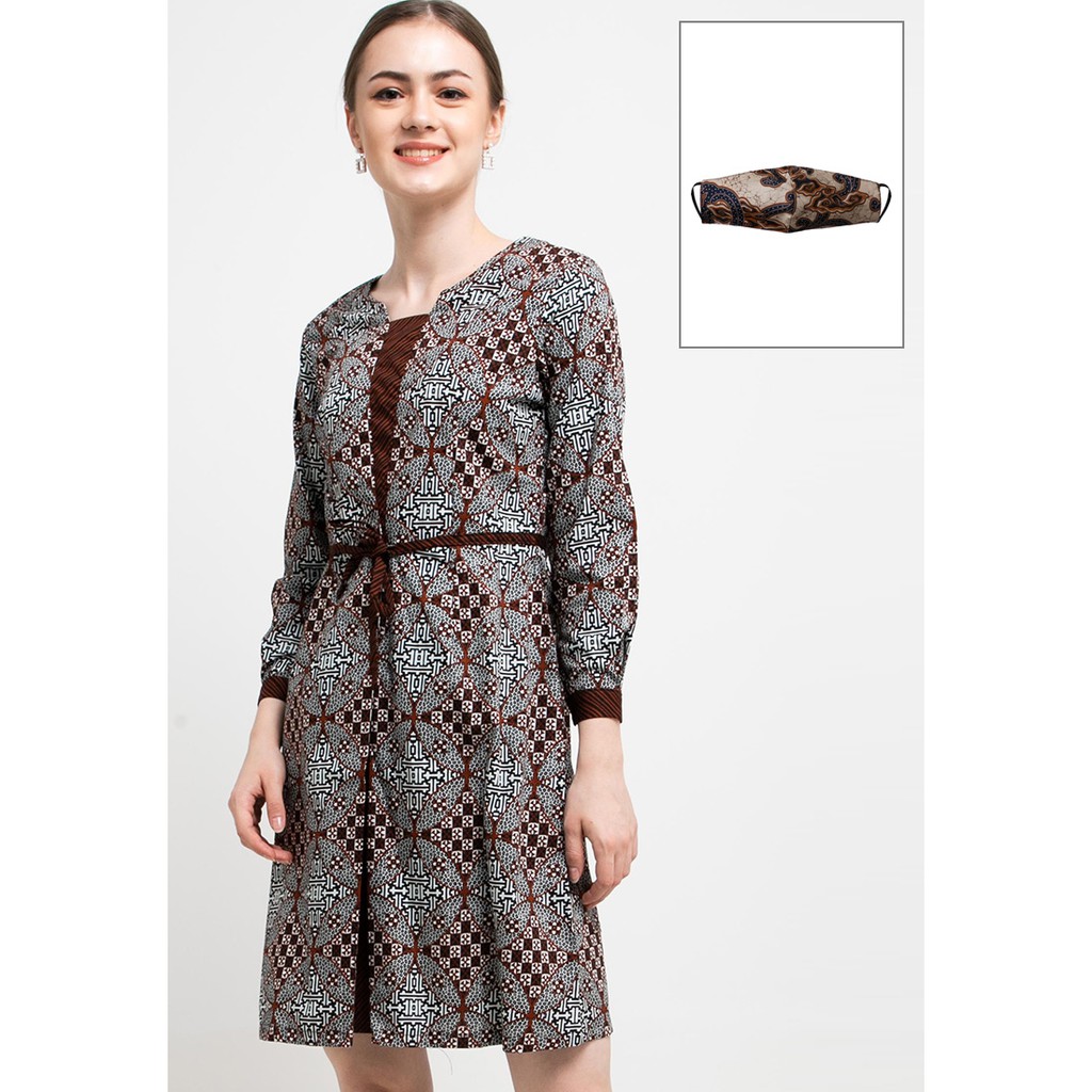 - Dress desain fit and flare dengan aksen batik print yang eye catchy