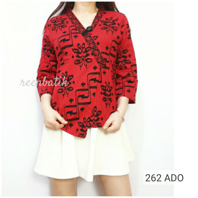 Name: Atasan Blouse Batik Wanita Lengan Panjang Model Kimono Warna Merah Edisi Imlek, 262 Ado#