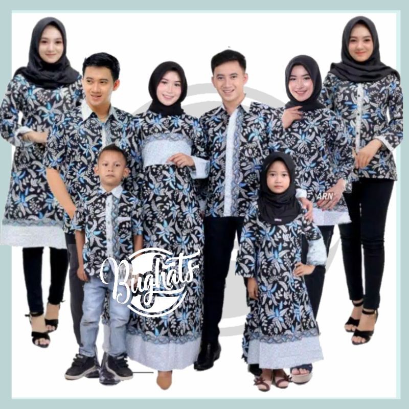 Jual Murah Pakaian W di Kabupaten Buton Tengah Batik Couple Keluarga Sania Ruffle Ori Ndoro Jowi Dnt Sogan Motif Blarak Biru dari Gallery Batik Keluarga Kota Pekalongan