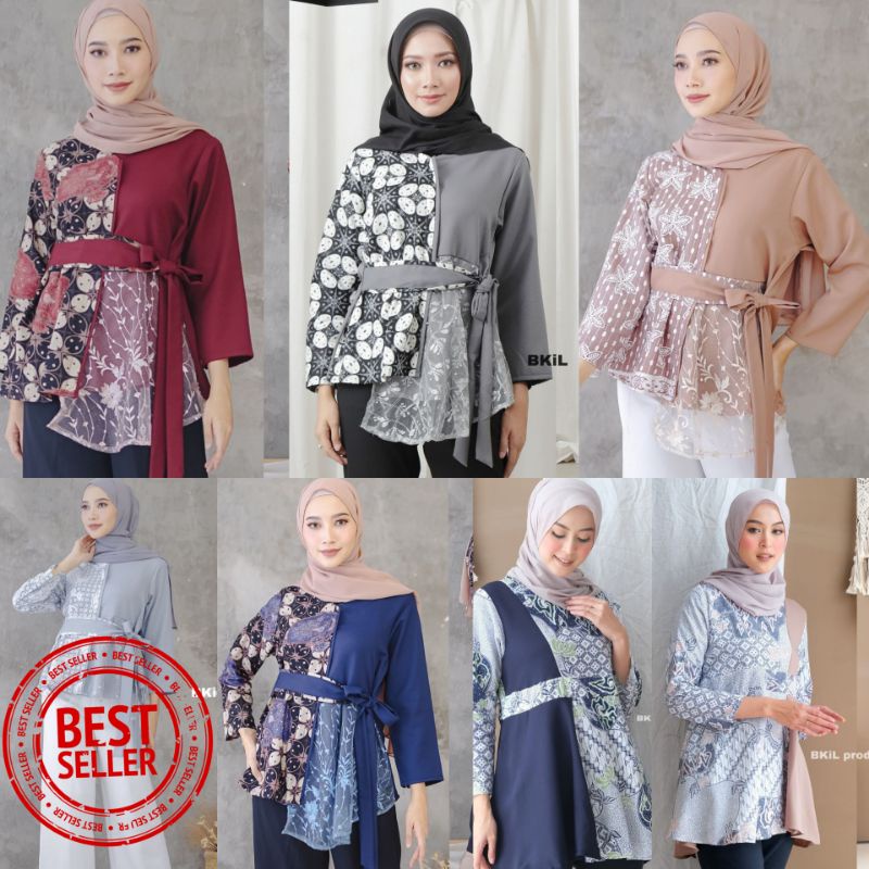 Name: Atasan Blouse Batik Wanita Modern Fashion Wanita Kekinian Brokat Batik Kombinasi Ruby And Arsyla