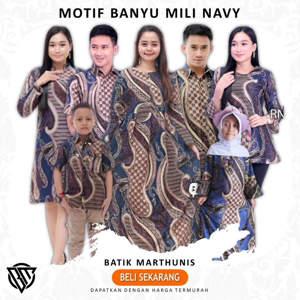 Termurah Pakaian W di Kabupaten Mamuju Batik Couple Keluarga - Couple Baju Batik Satu Keluarga Motif Banyu Mili Navy dari Batik_marthunis Kota Pekalongan