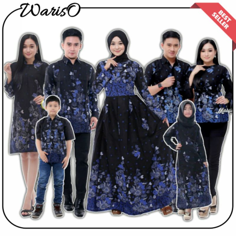 Produsen Pakaian W di Kabupaten Kepulauan Aru Baju Batik Couple Keluarga Batik Couple Kondangan Motif Sakura Biru dari Wariso Store Kota Pekalongan